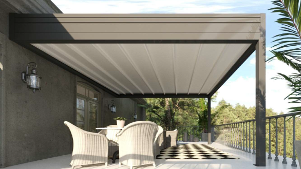 Pergotende: Strutture leggere in alluminio o legno, dotate di teli scorrevoli in PVC oscurante, ideali per proteggere dai raggi UV e dalle intemperie.
